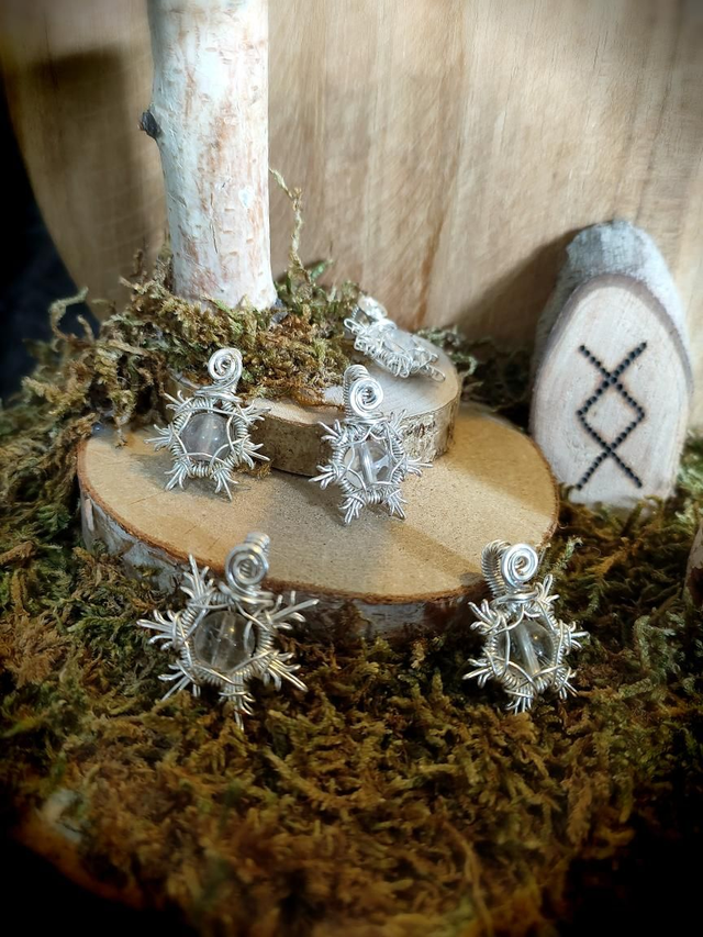Au cœur de cette étoile argentée scintille une magnifique perle de cristal de roche craquelé, dont les fissures internes capturent et réfractent la lumière, évoquant la glace et la magie des paysages hivernaux. Chaque craquelure est un motif unique, rendant chaque pendentif absolument singulier. ❄️